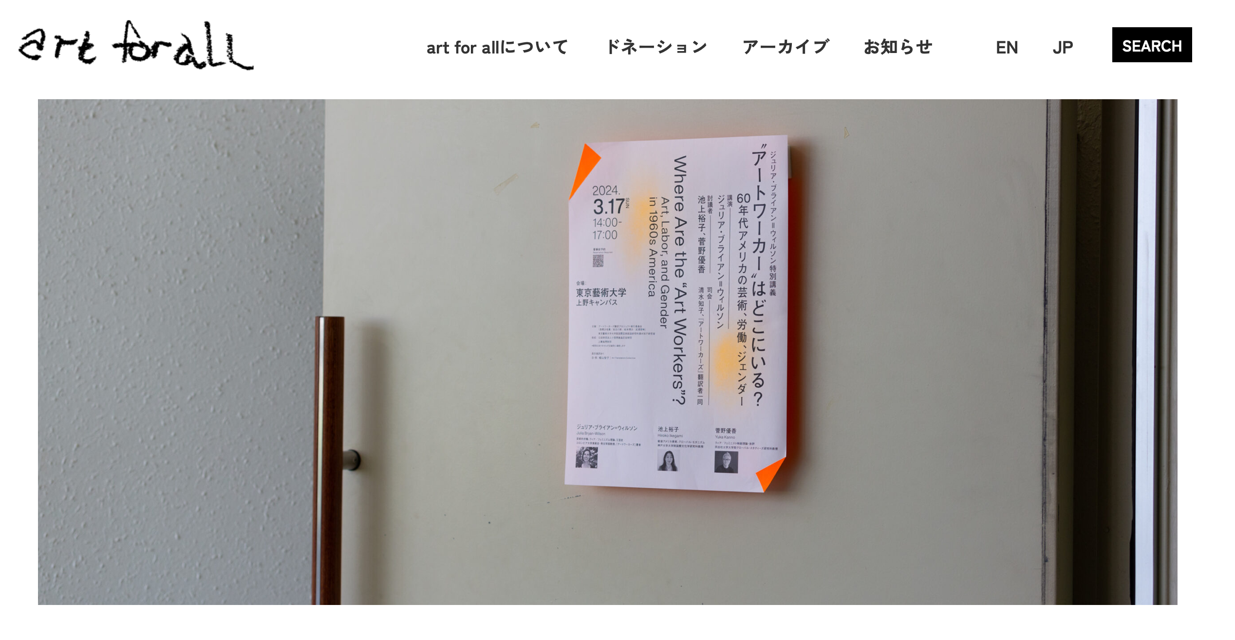 art for allではこれからの美術の問題に対して積極的な話し合いの場を設けたいと考えています。また引き続きアーティストやアートワーカーのためになる、様々なイベントを企画しております。アーティストやアートワーカーの中でどのようにコミュニティを作っていくのか、また例えば何かの掲示板や物々交換の場、アルバイトや設営の手伝い、素材の売買の場など、どういうコミュニティに興味があるか、あるいは今後の活動の中でどのようなことを art for all にやってほしいか、更には自分が困ってることについての相談など、現在企画中です。今後ともどうぞよろしくお願いします。art for all の X や Facebook、メールニュース、ホームページもありますので是非チェックしてみてください。